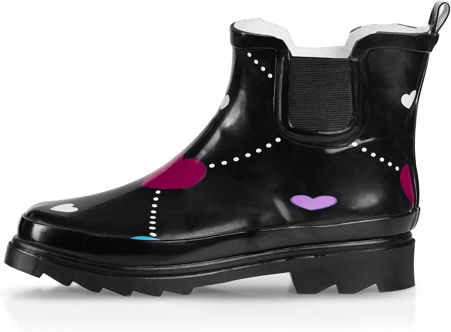 • NATURAL RUBBER CONSTRUCTION: When the wetness tries to sneak in, our cute rain shoes shut it out with a highly water-resistant, built-to-last design. They also have a rugged, chunky, and deep tread to keep you steady in slippery conditions.