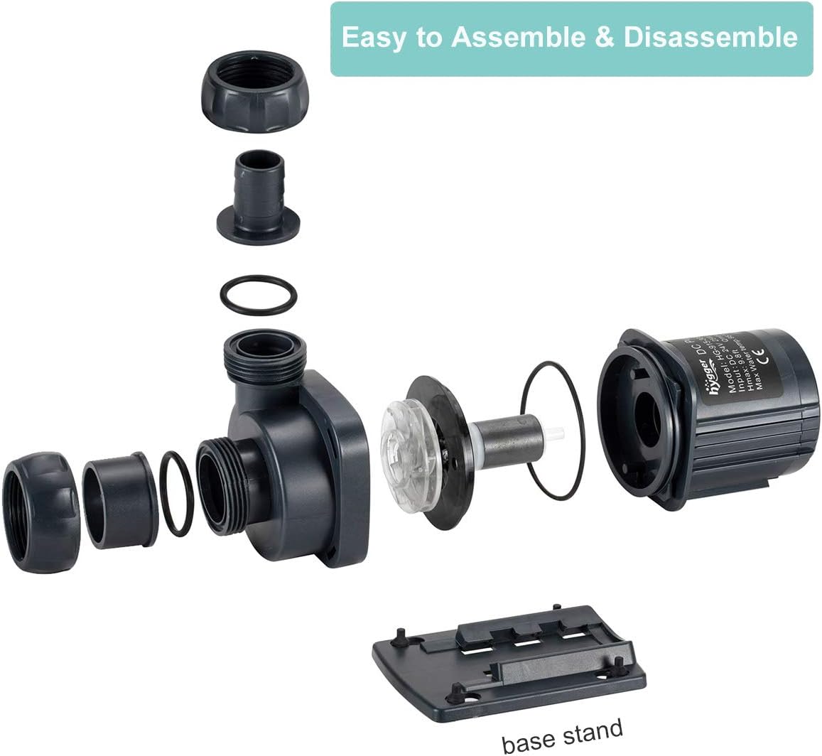 - [ Internal & External Use ] - hygger dcp water pump can be ran externally or be submerged. Please note the controller is not waterproof, must be placed indoors.The water pump inlet and outlet ports with standar size threads, it comes with screws, o rings, pipe connection fittings.You can connect 1", 3/4", 1-1/2", 1-1/4" pipes to the pond pump