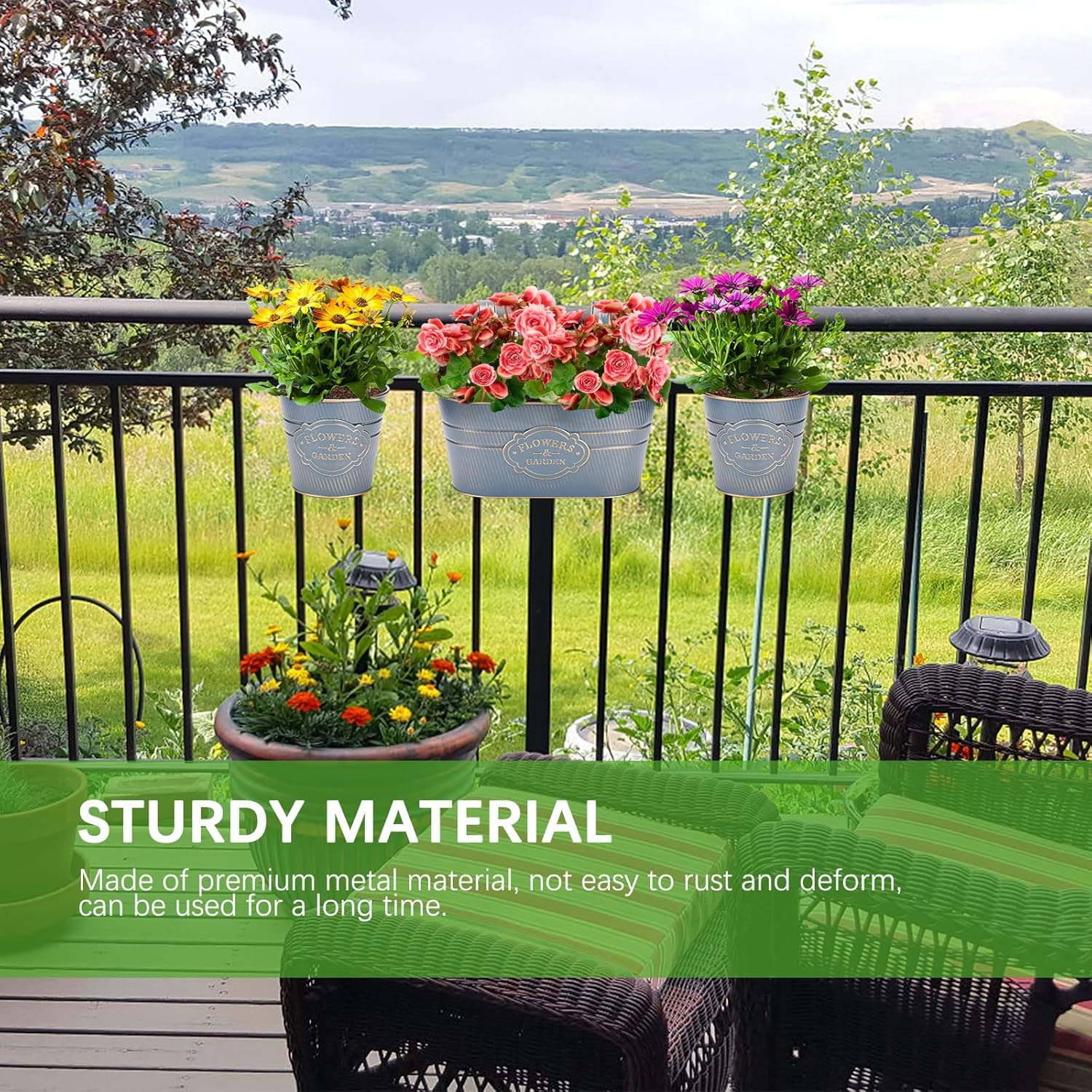 - 【BALCONY RAIL PLANTER】Rectangular Planter was designed to maximize inside growing space allowing dirt and roots to grow strong and deep.This special design can be hung on the balcony, window, garden,railing, anywhere in the room,also can be used as desktop.