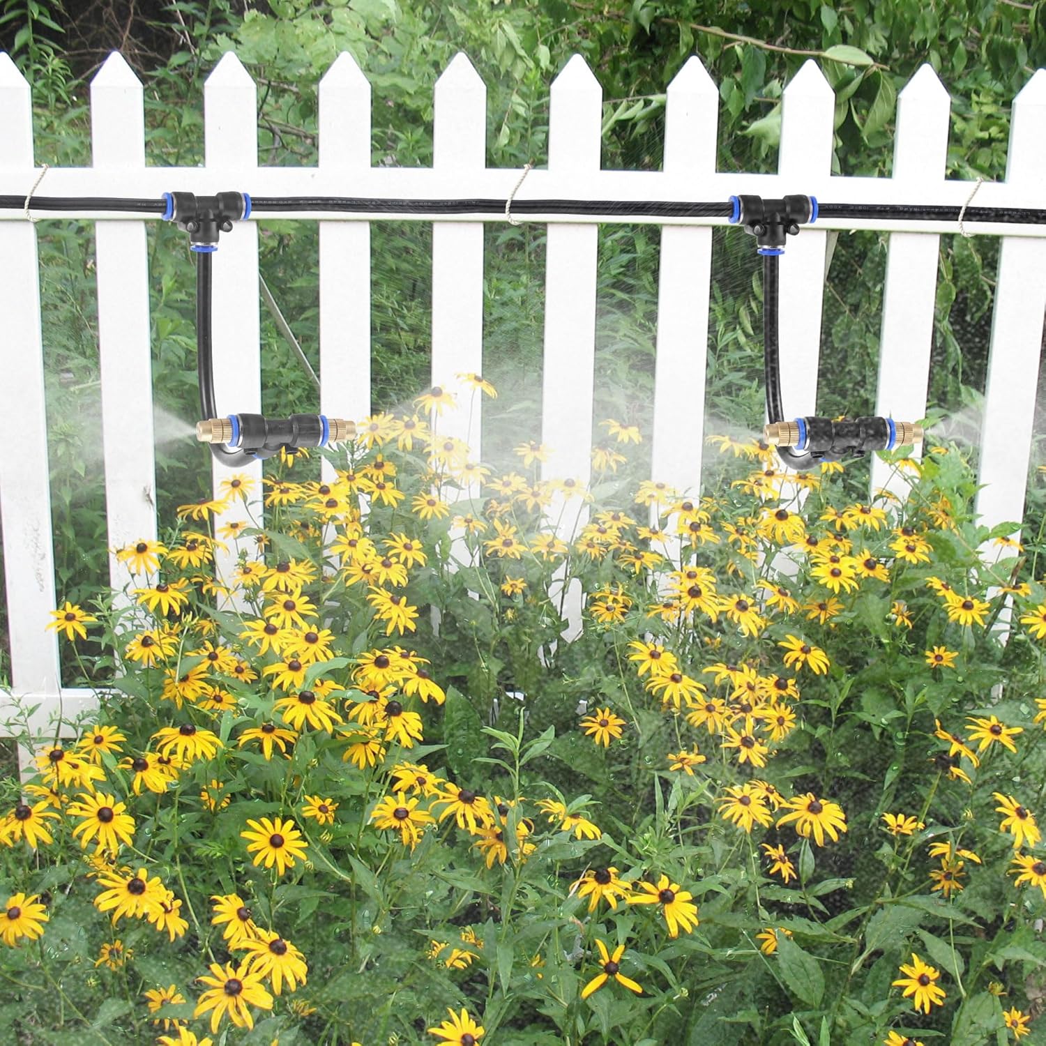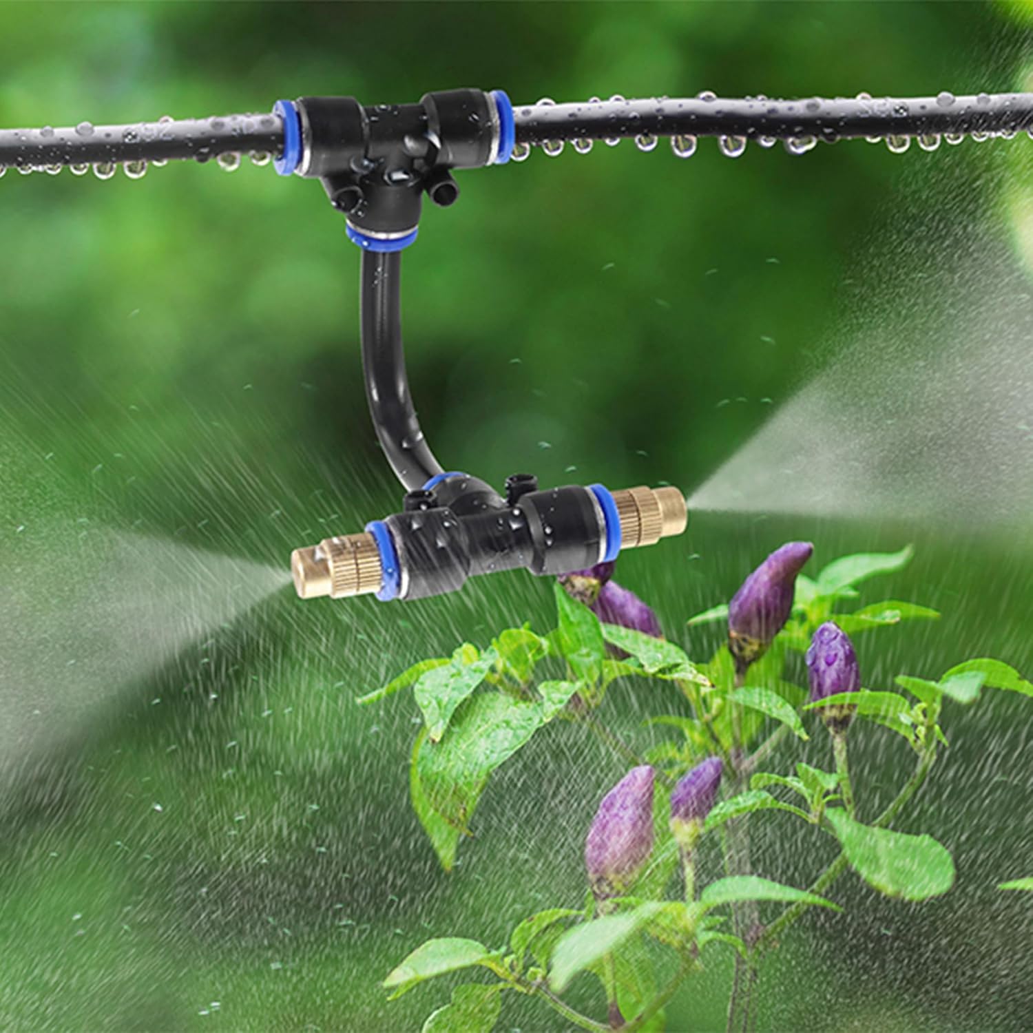 - 【Easy to Install】: Easy to install and disassemble. Tubes can be easily inserted or pulled out by pressing the blue snap button. And by twisting nozzle, you can adjust the water volume. Atomizing Misting Sprayer outer diameter: 0.35inch, orifice diameter: 1.1mm (0.043").