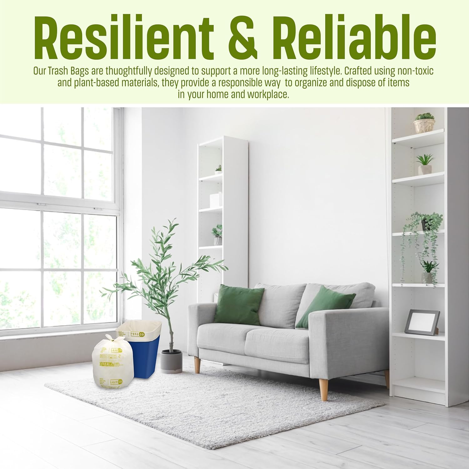 Compostable Garbage Bags | 8 Gallons, 50 Count, 28" x 21.6" | Waste Disposal bags for Kitchen | Plant-Based Starsealed Bags | Indoor & Outdoor | Food Scrap Waste Bags
