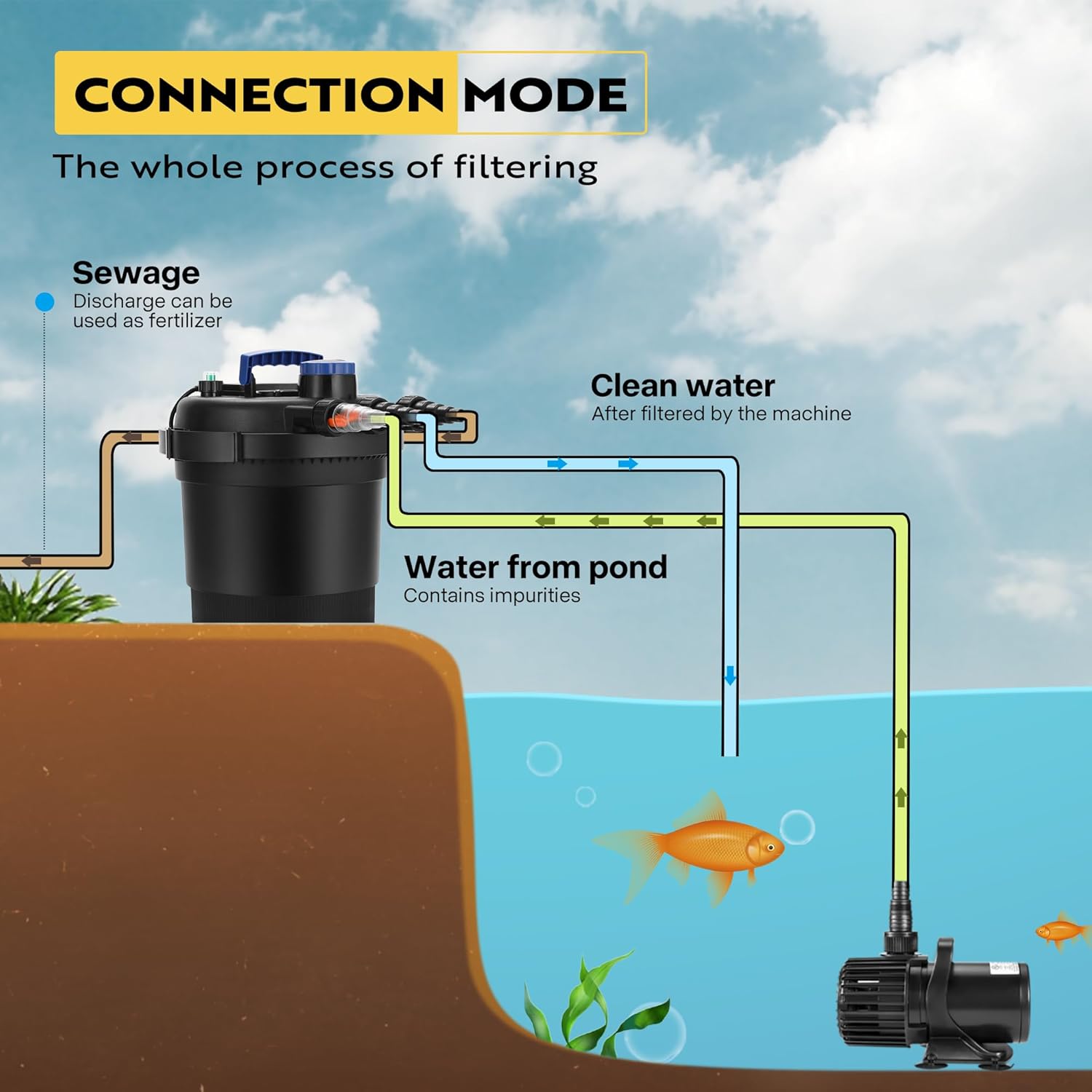 - EASY TO OPERATE - This pond filter is more than simple to set up and put into use quickly; You can turn the switch to change the function from filtered water to sewage through the outlet; The convenient handle allows for easy relocation so you can put it anywhere you need