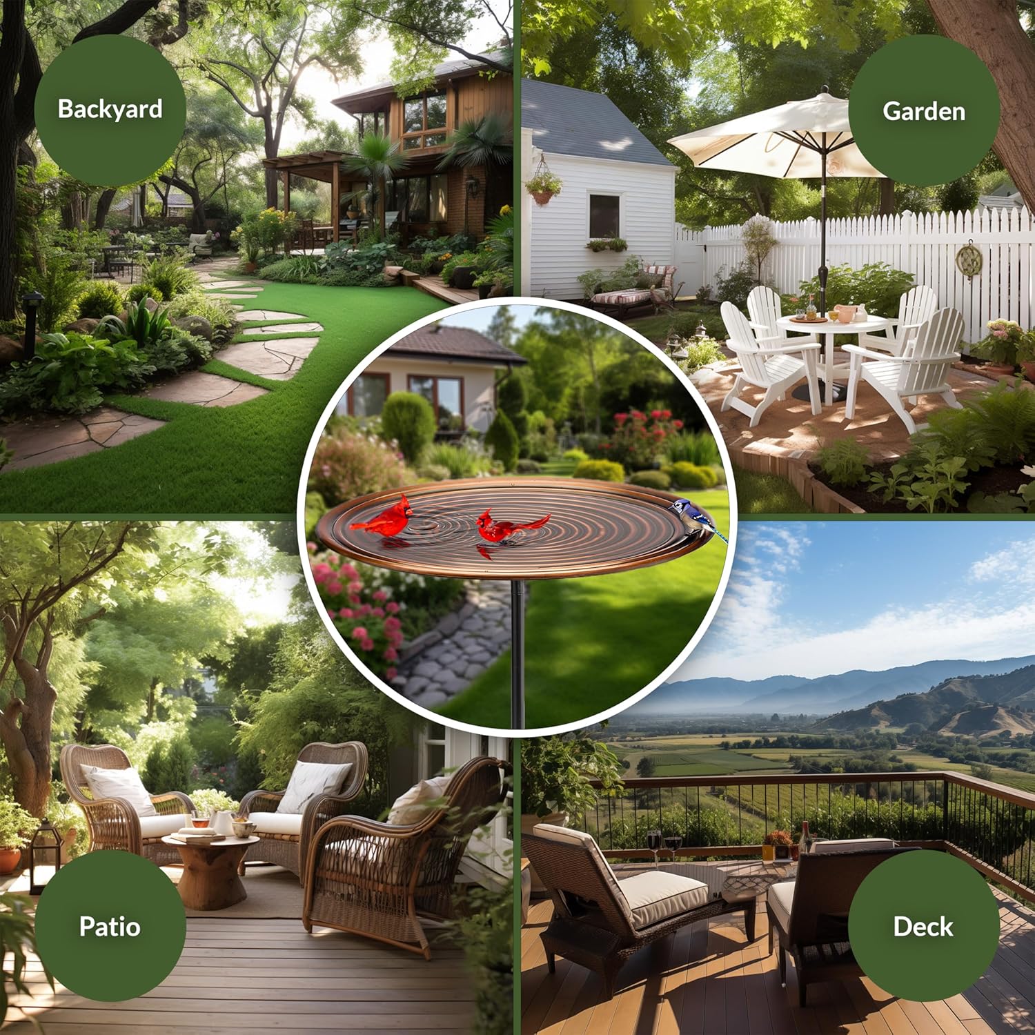 - LIFETIME DURABILITY: Resilient pure copper using artisan hammering techniques, this bowl is handcrafted with 22-gauge copper for lasting durability. Includes a steel 4-prong garden stake. No additional hardware required. Easy self-screw assembly.