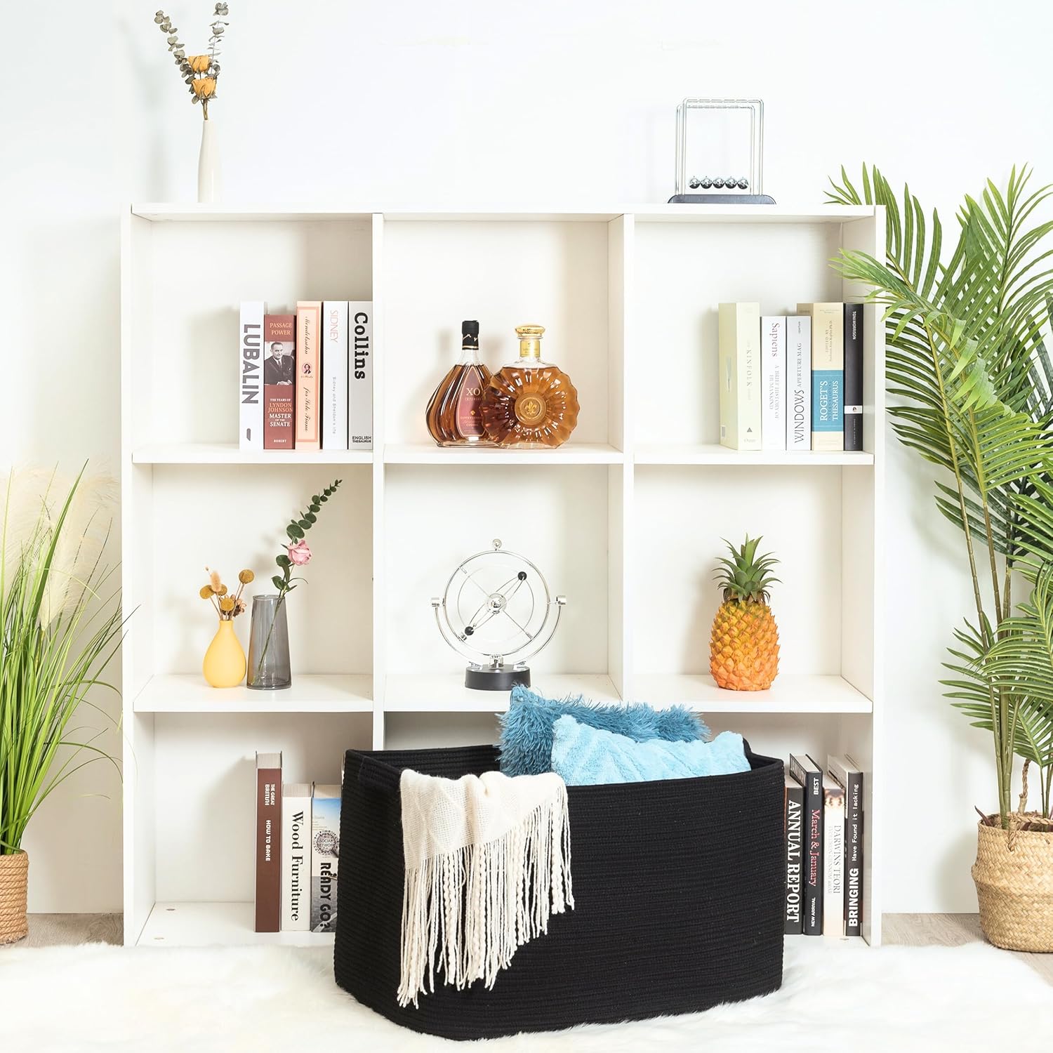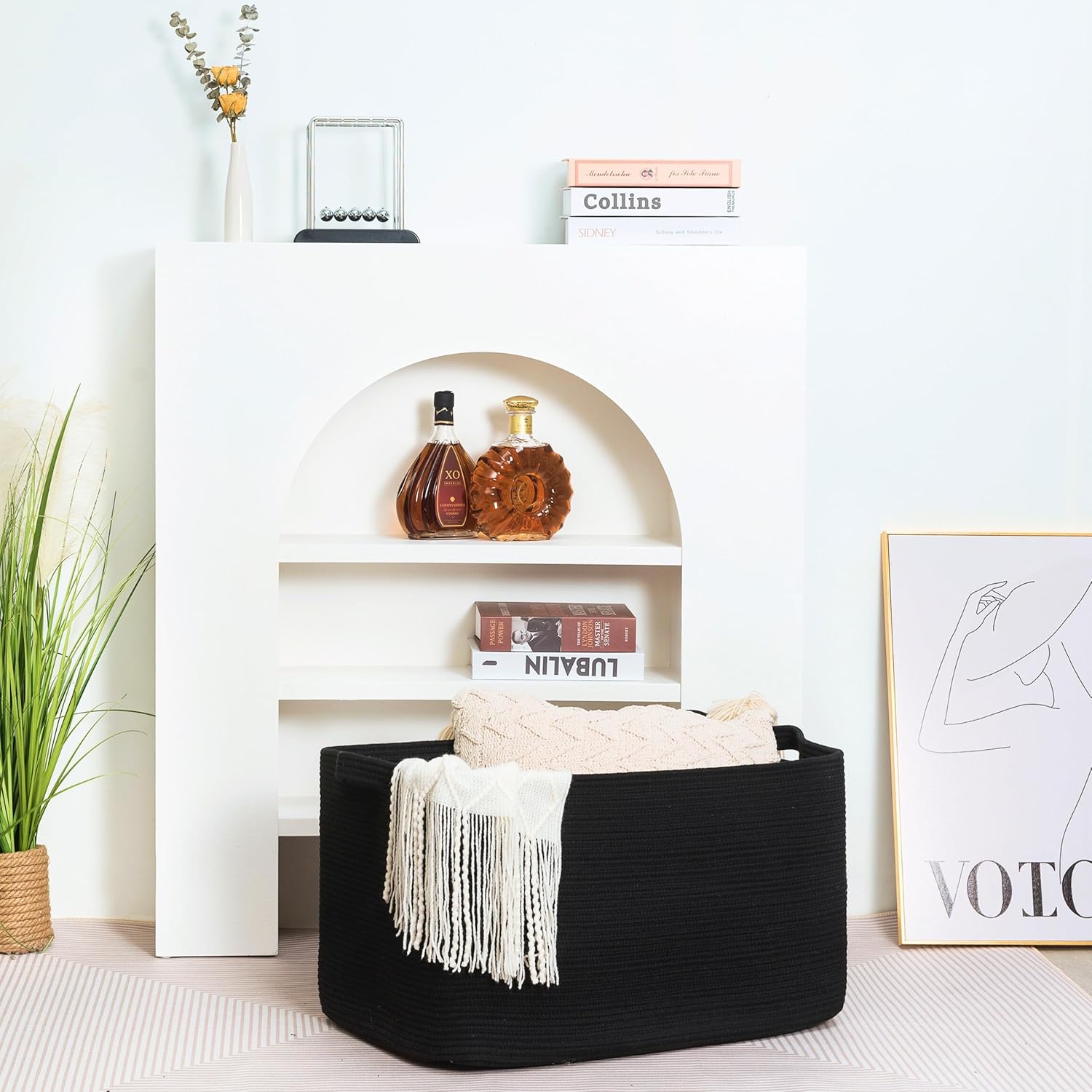 - Decorative Storage Baskets for Home Decor - A stylish, practical alternative to other boring storage solutions. Not only will our large storage baskets help you get organized, their sleek, sophisticated shape and neutral colors will complement any decor and any room: the bathroom, playroom, bedroom, living room, laundry room, mudroom, home office, entryway & more.