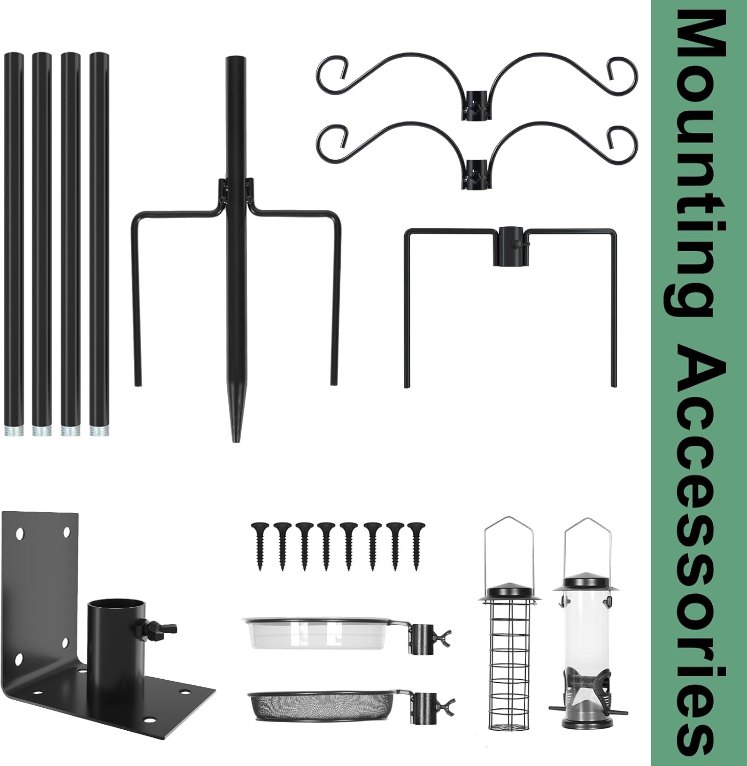 - FUNCTIONAL POLE SET: Our bird feeder stand comes with 2 pair hooks, 2 feeders, bird bath support ring and bird bath, micro mesh feeder tray, and heavy duty house pole