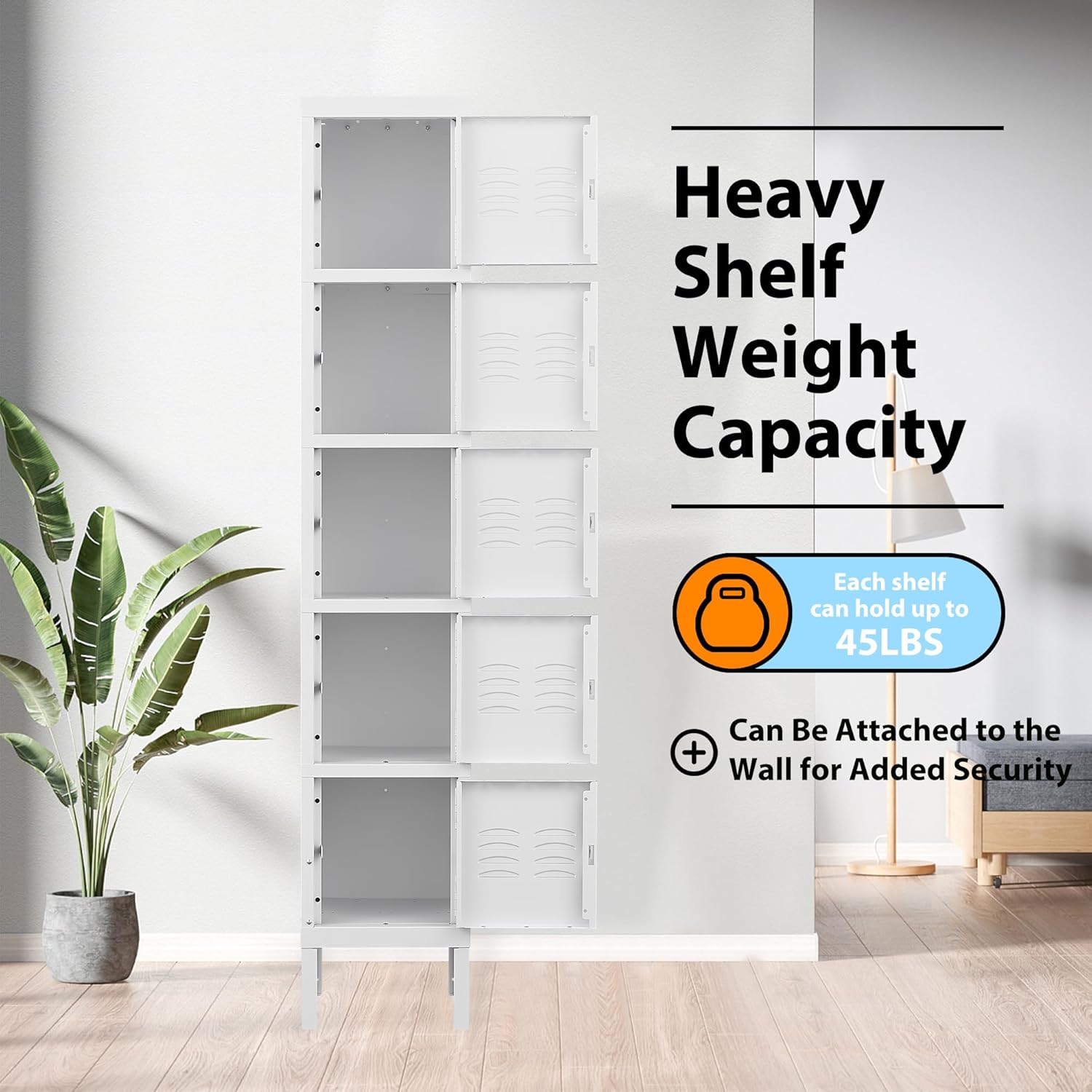 Metal Lockers for Employees, Steel Storage Locker with 5 Doors for Home, Office, School, Gym (White)