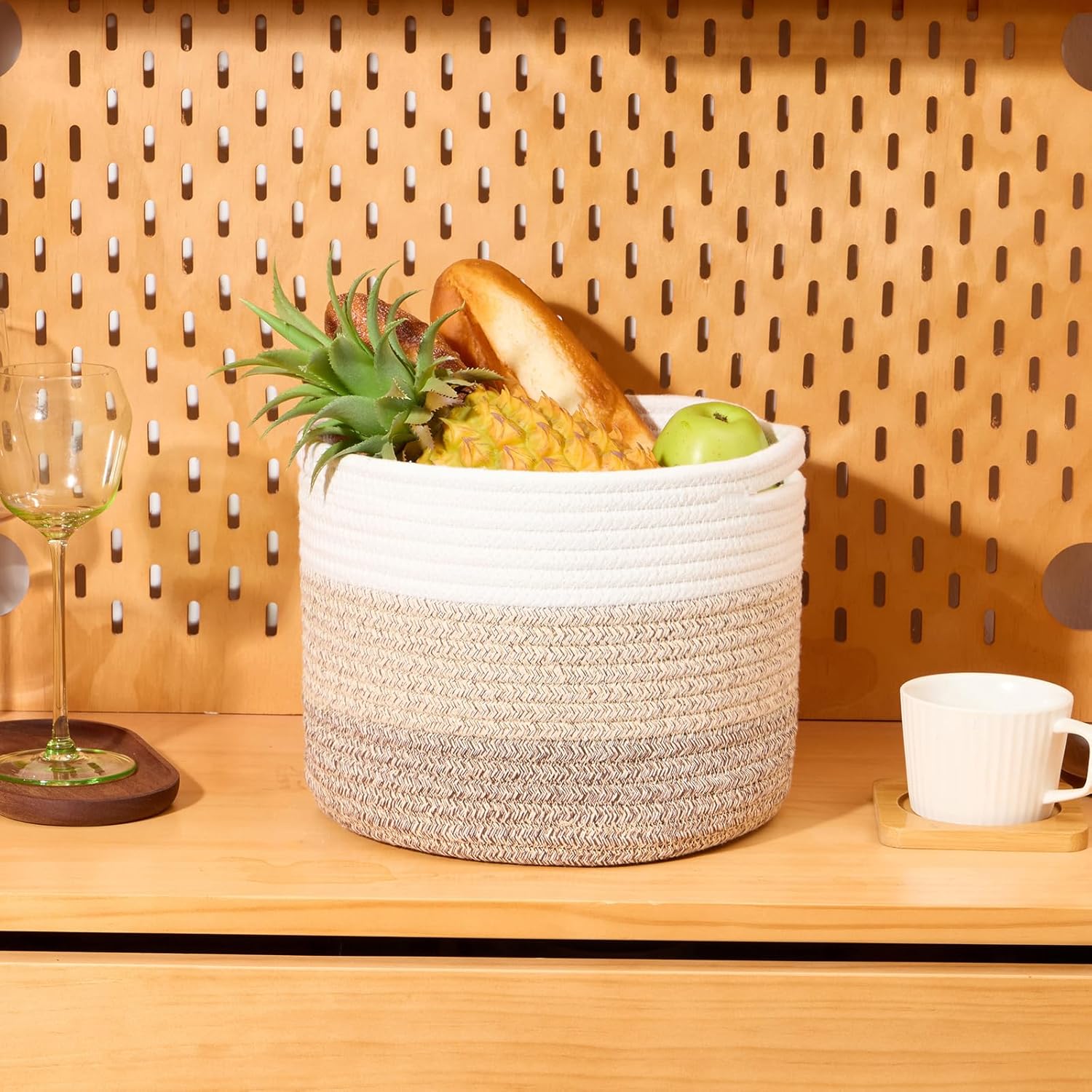 - [Premium Quality Materials]: Our small storage baskets are meticulously handcrafted from natural, odorless cotton rope. They boast a durable and safe design with no sharp corners, making them perfect for a baby-friendly environment. The hidden, widened handles and chic appearance make these baskets a fashionable and functional addition to any decor