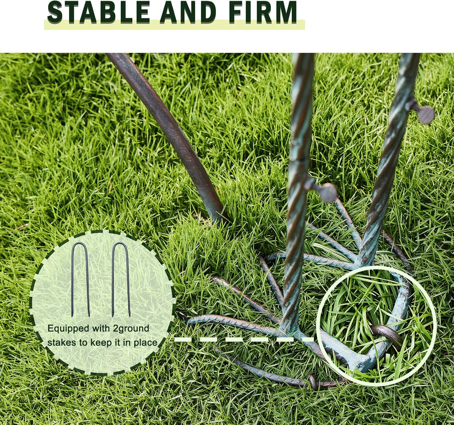 - STABLE AND SOLID: Equipped with 2 U-shaped stakes keep the crane bird bath firmly on the grass, even during harsh weather conditions