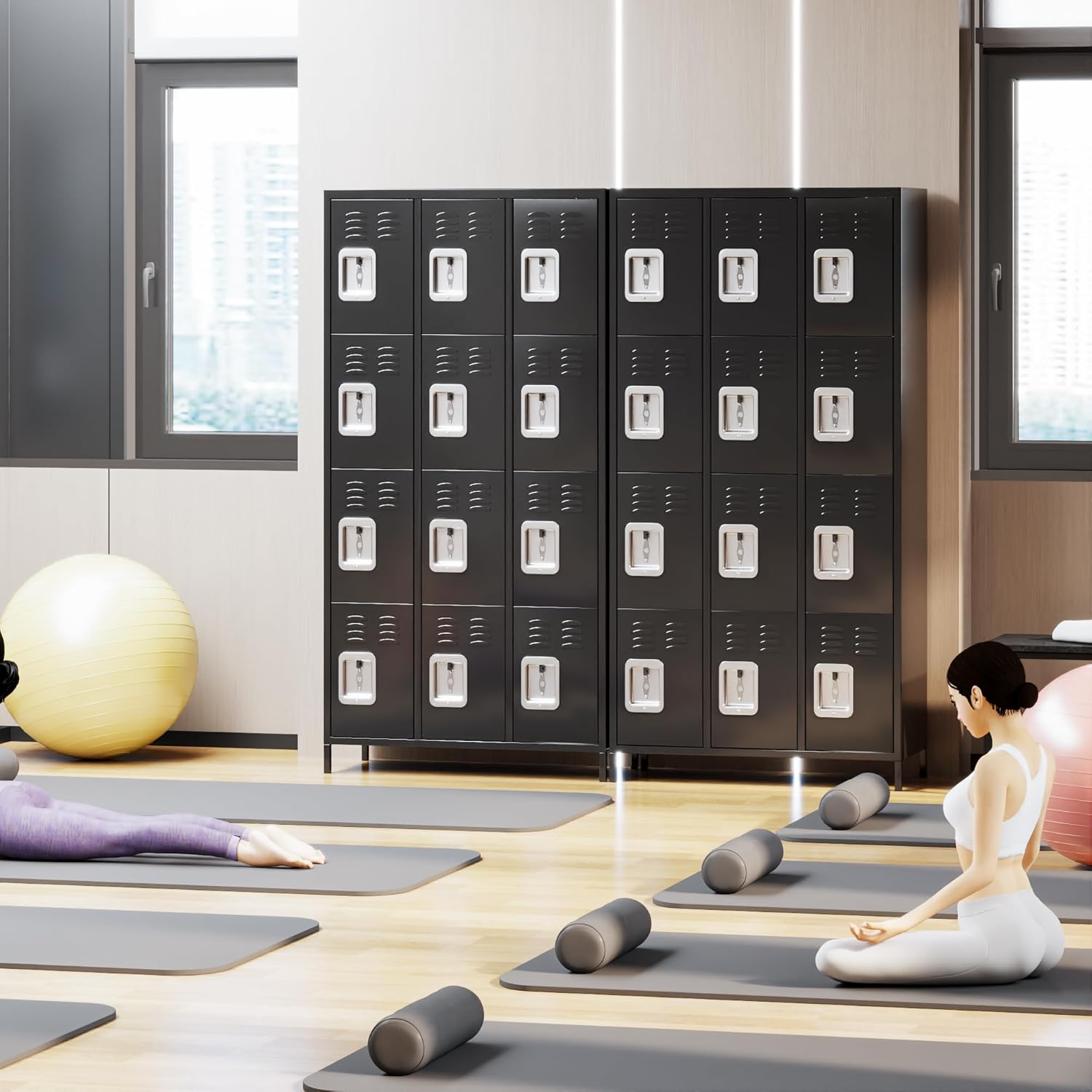 METAN Metal Locker for School Office Gym Bedroom, 12 Doors Black Steel Storage Locker Cabinet for Employees, Industrial Storage Locker, Assembly Required (12 Door-Black)