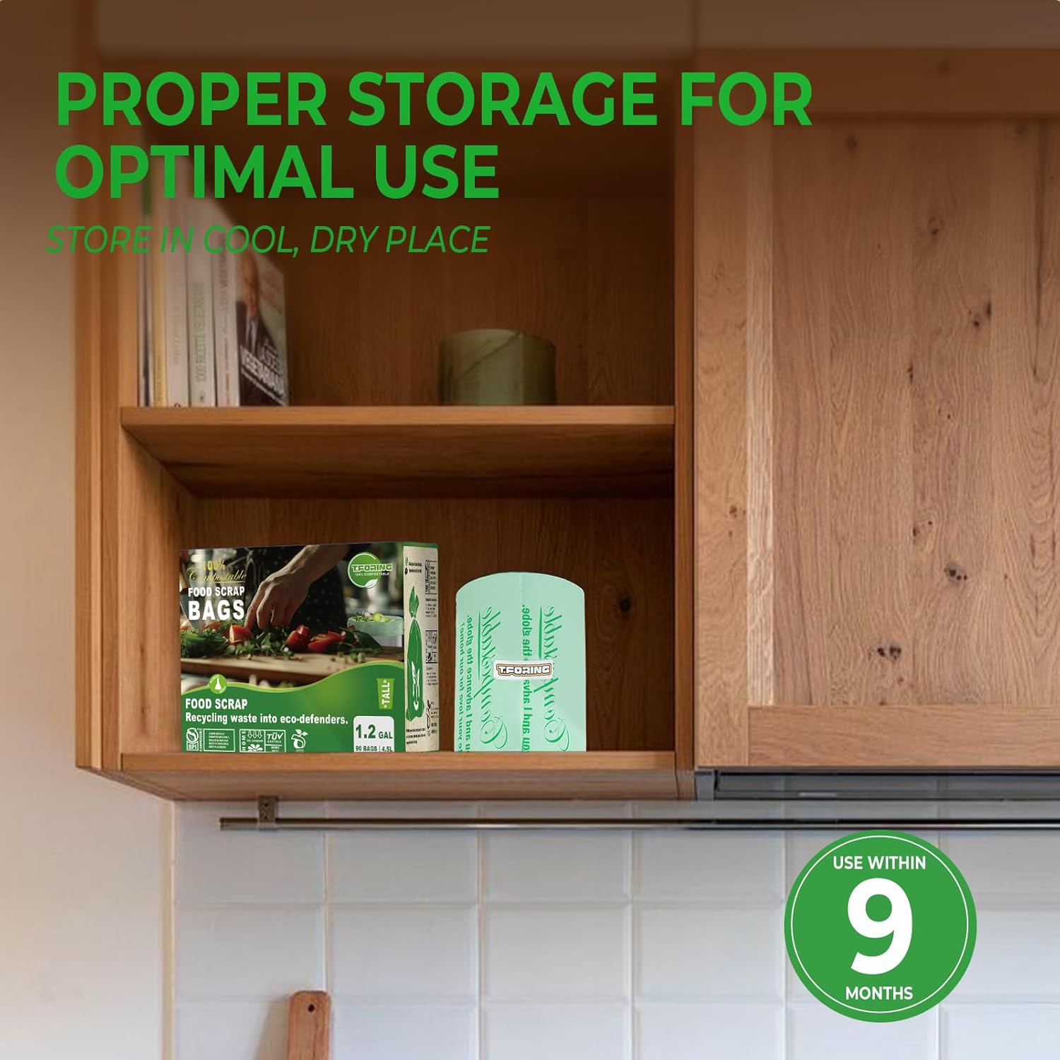 1.2 Gallon Compost Bags, 4.5 Liter, 0.8 Mil,80 Count Compostable Trash Bags, Small Kitchen Food Scrap Waste Bags, ASTM D6400, US BPI, CMA and Europe OK compost HOME Certified