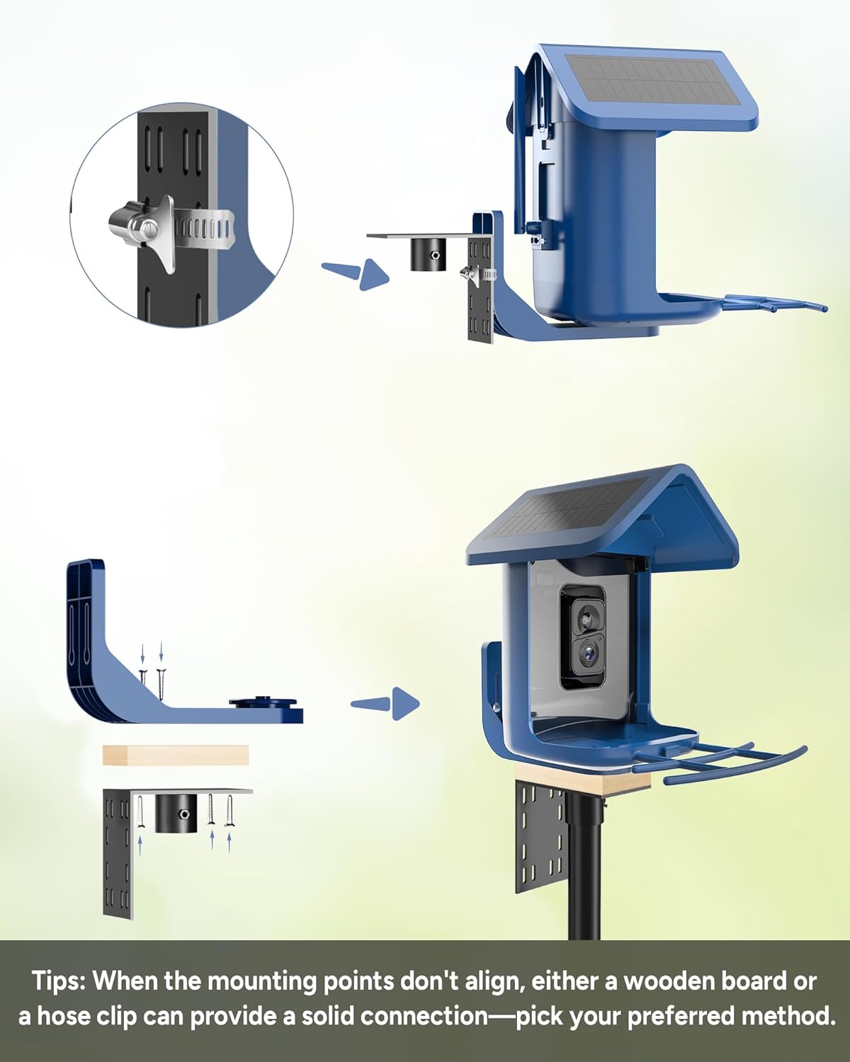- 【Universal Compatibility with Bird Feeder】This bird feeder pole is designed for Onlyfly Netvue Birdsnap SOLIOM FeatherSnap HARYMOR TT Nature Birdkiss osoeri and more. Comes with wooden adapter, using a bridging method for most bird feeders. Additionally, we offer dedicated adapter (sold separately) that are fully designed for Bird Buddy installations.