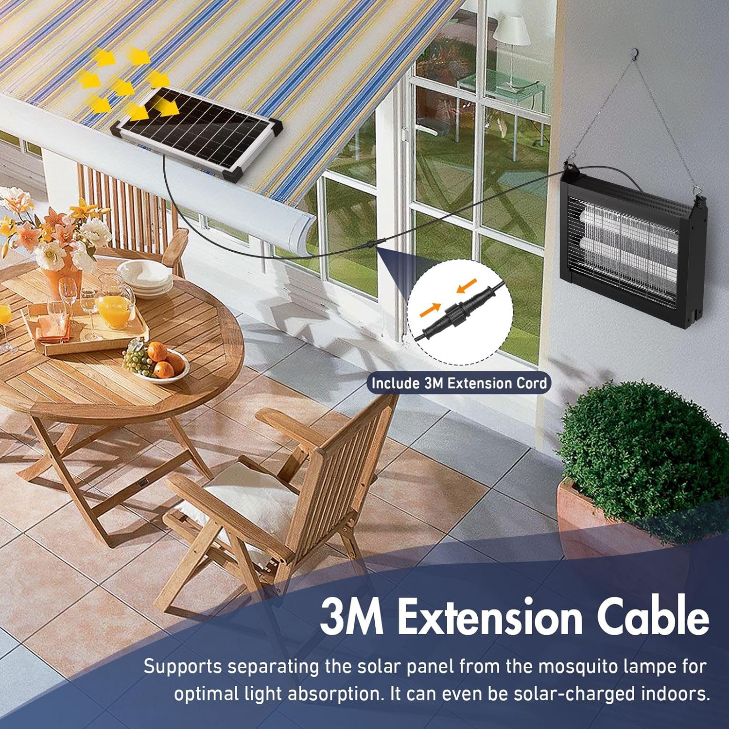 - Detachable Solar Panel for Optimal Charging – The mosquito zapper solar panel can be easily removed and placed in a sunlit area using the included 9.8ft extension cord. This allows for efficient solar charging, even if the lamp itself is positioned in a shaded or indoor area. Without worrying about placement limitations, ensure uninterrupted mosquito protection day and night.