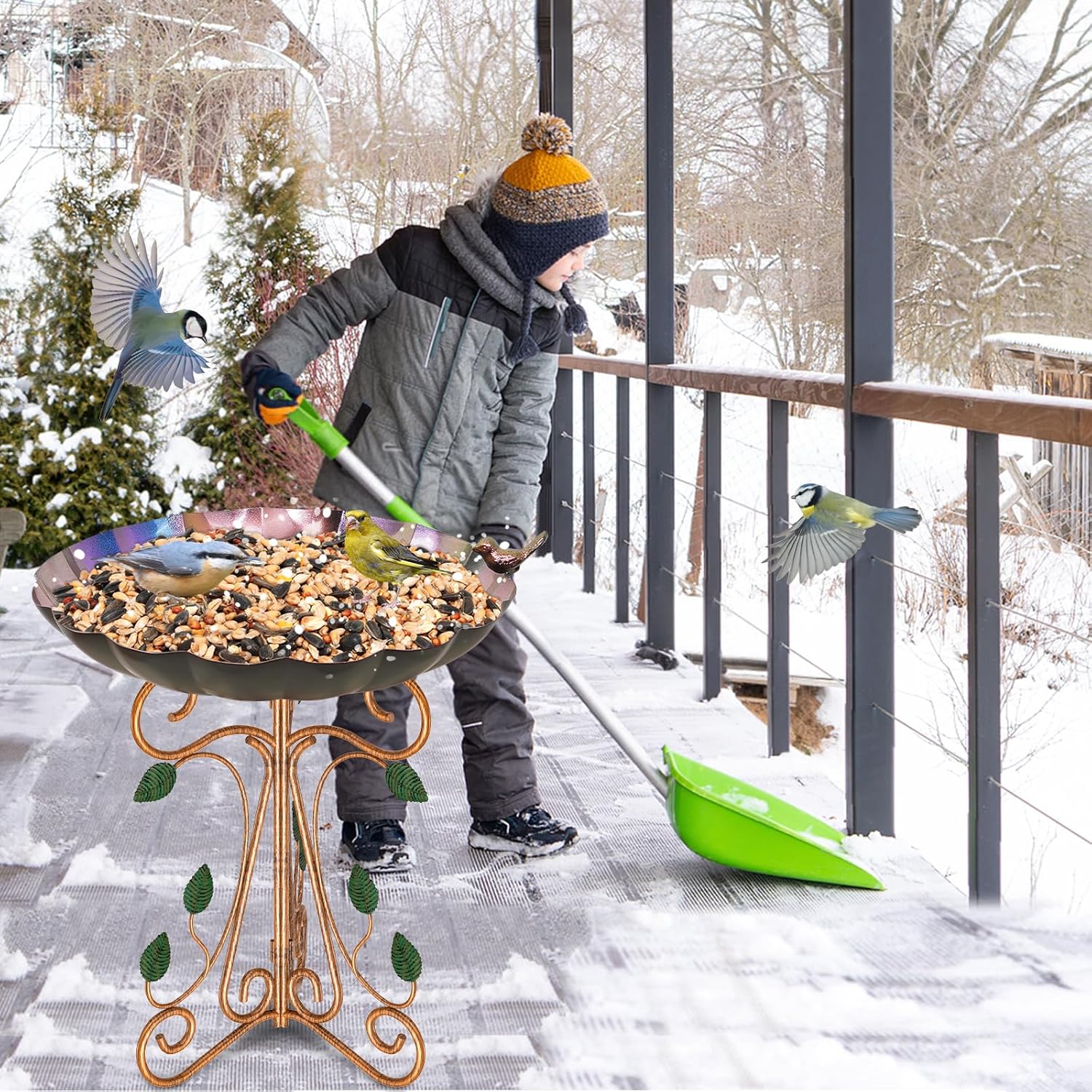 - 【Optional Usages & Practical】 Provides a safe spot for birds to drink, bathe, or feed. The basin holds ample water, while the removable design allows quick conversion to a seed feeder.