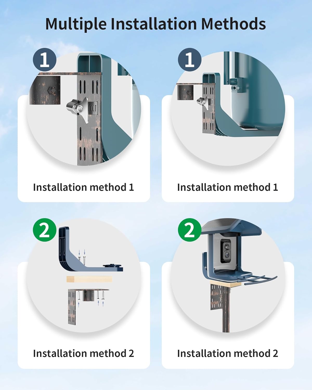 - 【Easy Installation】This bird feeding station reaches a total height of 60 inches and comes with 6.5-inch 5-prong base, 2 x connecting pole, and an L-shaped plate. The slip-in connection method allows for easy assembly, similar to stacking building blocks. Installation typically takes 20 to 40 minutes and no need extra tools. This user-friendly design ensures that anyone, from young enthusiasts to seniors, can set it up effortlessly.