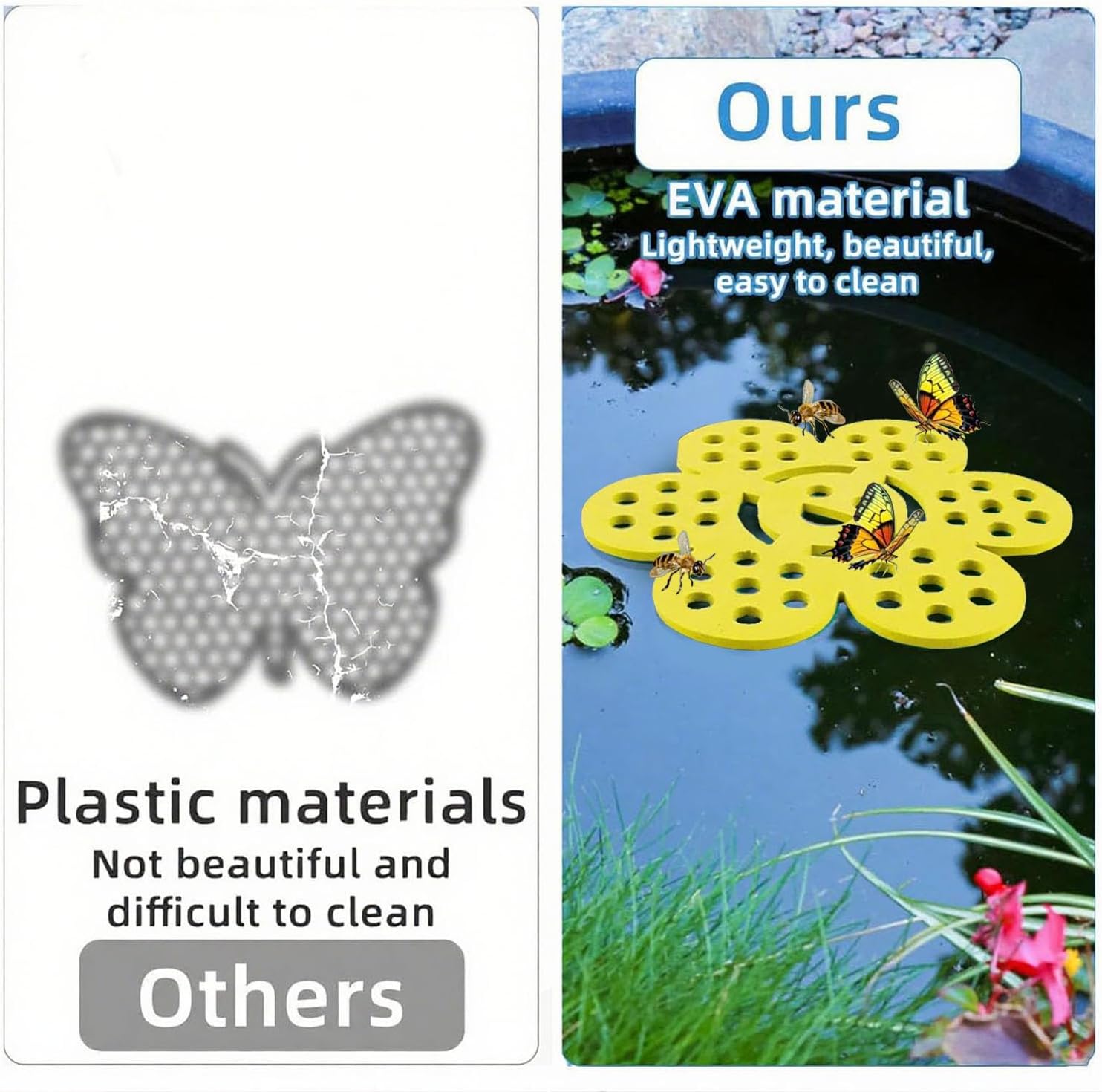 - Durable Material: Crafted from lightweight yet non-deforming foam, this wildlife waterer floats effortlessly and remains stable in bird baths, ponds, or shallow water dishes. It’s perfect for offering a reliable water source to bees and butterflies alike and holds up well outdoors in all weather conditions